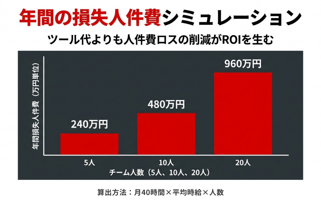これを10人のチームで換算すると、年間で4,800時間。本来ならもっと面白いカットを追求できたり、余裕を持って業務を回せていたはずの時間が、実体のない「見えないコスト」として消えています。