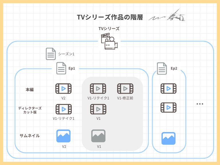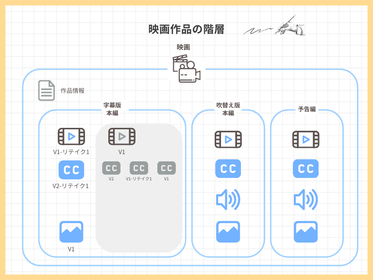 作品がシリーズ化し、さらに配信プラットフォームごとに多言語の字幕や吹替が増えていくと、Excelの「行と列」だけでは、その複雑な親子関係を表現しきれなくなります。